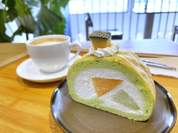 メロンロールケーキは、生地までメロン色でしっかりメロンの香りと風味が感じられました。