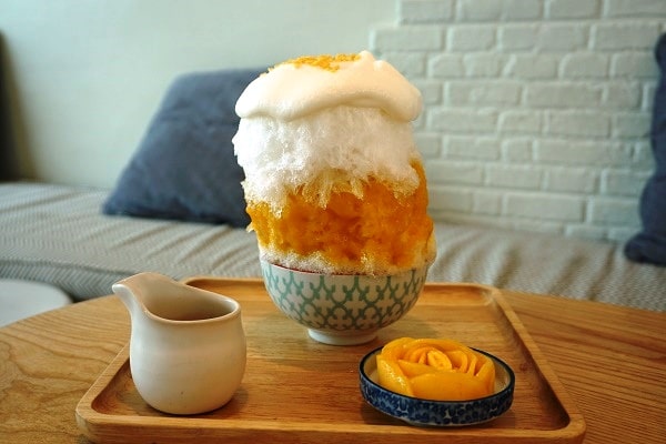 かき氷は7種類あったのですが、この日いちごとかぼちゃは無かったのでマンゴーに。