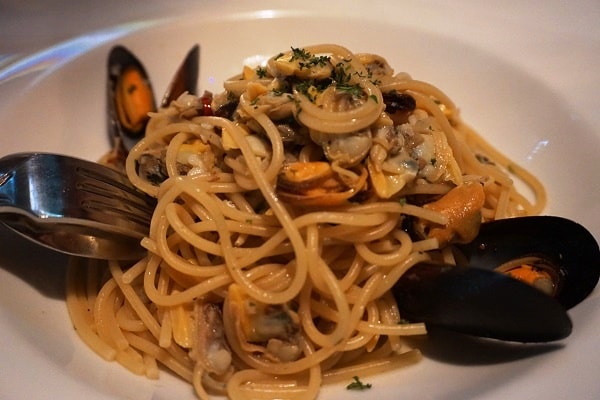 アサリとムール貝がたっぷり入っているボンゴレ。