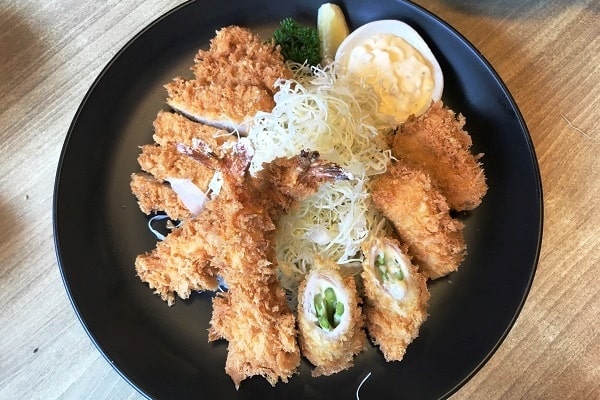 エビフライに、ヒレカツ、ロースかつ、カニクリームコロッケと4種類もあるボリューム満点で満足感のあるセット。