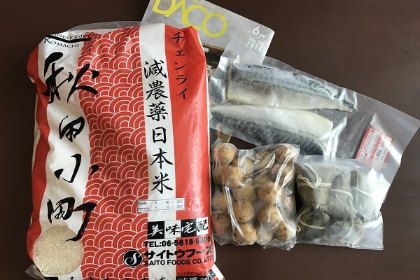 私はお米と魚やちまきなどの冷凍食品を一緒に注文しました。